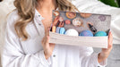 Inside our Stressed Out Box: 1 Down to Earth bath bomb, 1 Moody Blues bath bombs, 1 Tranquility Bath bomb, And three of our new Shower steamers: Rage diffuser, Tranquility, and Revive.
